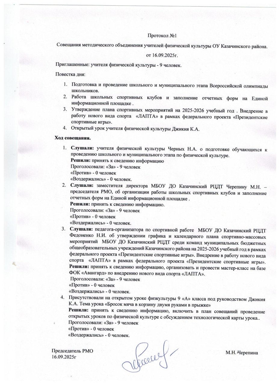 Протокол № 1 совещания заместителей директоров ОУ Казачинского района 2024-2025 уч.г